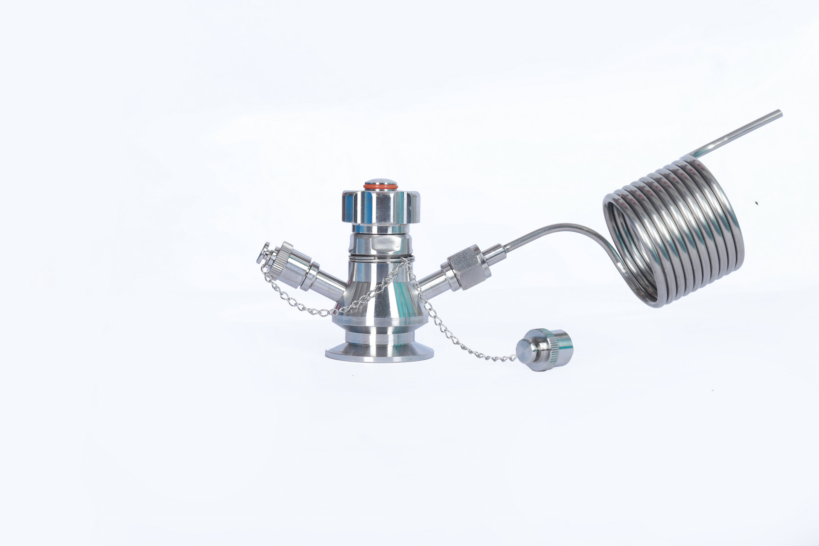 消沫器具备有特种功能,链接口挂在无菌取样阀螺纹丝出口上,(设计为螺旋式)。管内径光洁度光滑,取样阀打开流向到消沫器盘管上,经过盘管螺旋走向,减少啤酒气体压力,出酒很少有沫,保证取样时的酒液口感度 同时也可以满足于各种生产工艺需求,也可以用来打酒设备。该啤酒消沫器不锈钢SUS304材质,卫生设计,满足于啤酒业等各种工艺领域。